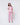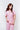 Conjunto de pijama para dama en camisa manga corta con pantalón en color rosa pastel con líneas blancas.
