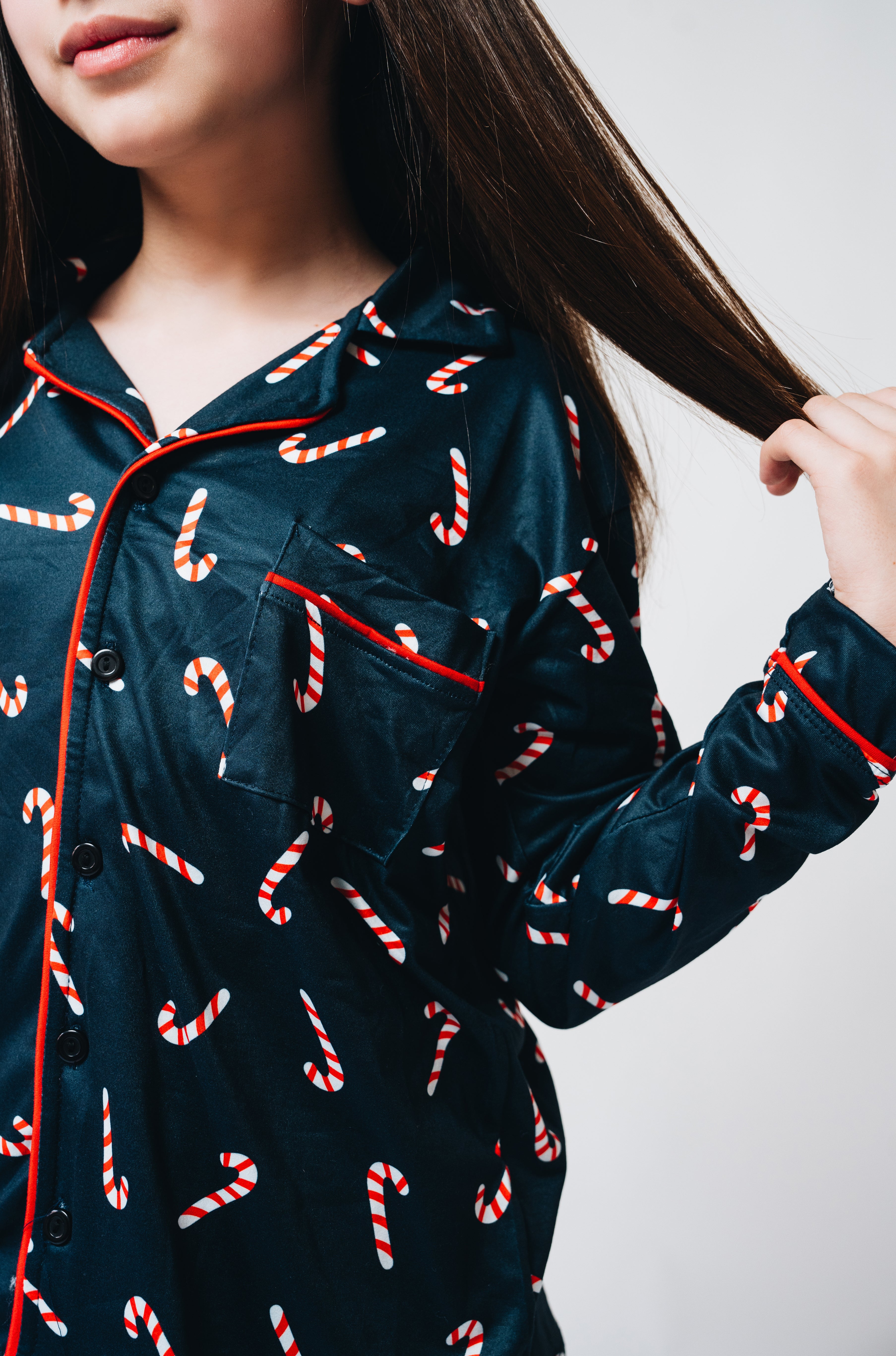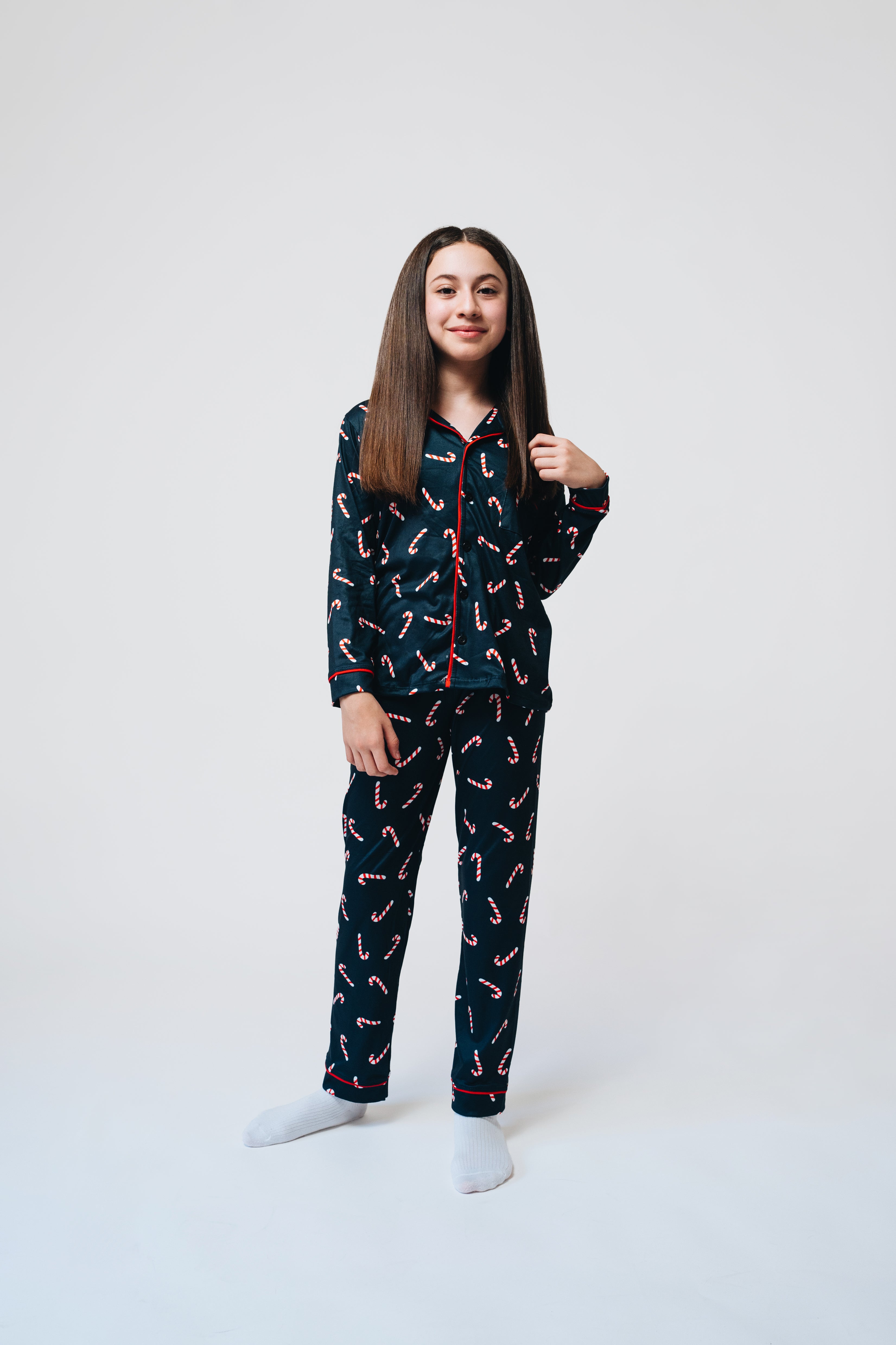 Conjunto de pijama edición navidad caramelo para infantil y adolescentes.