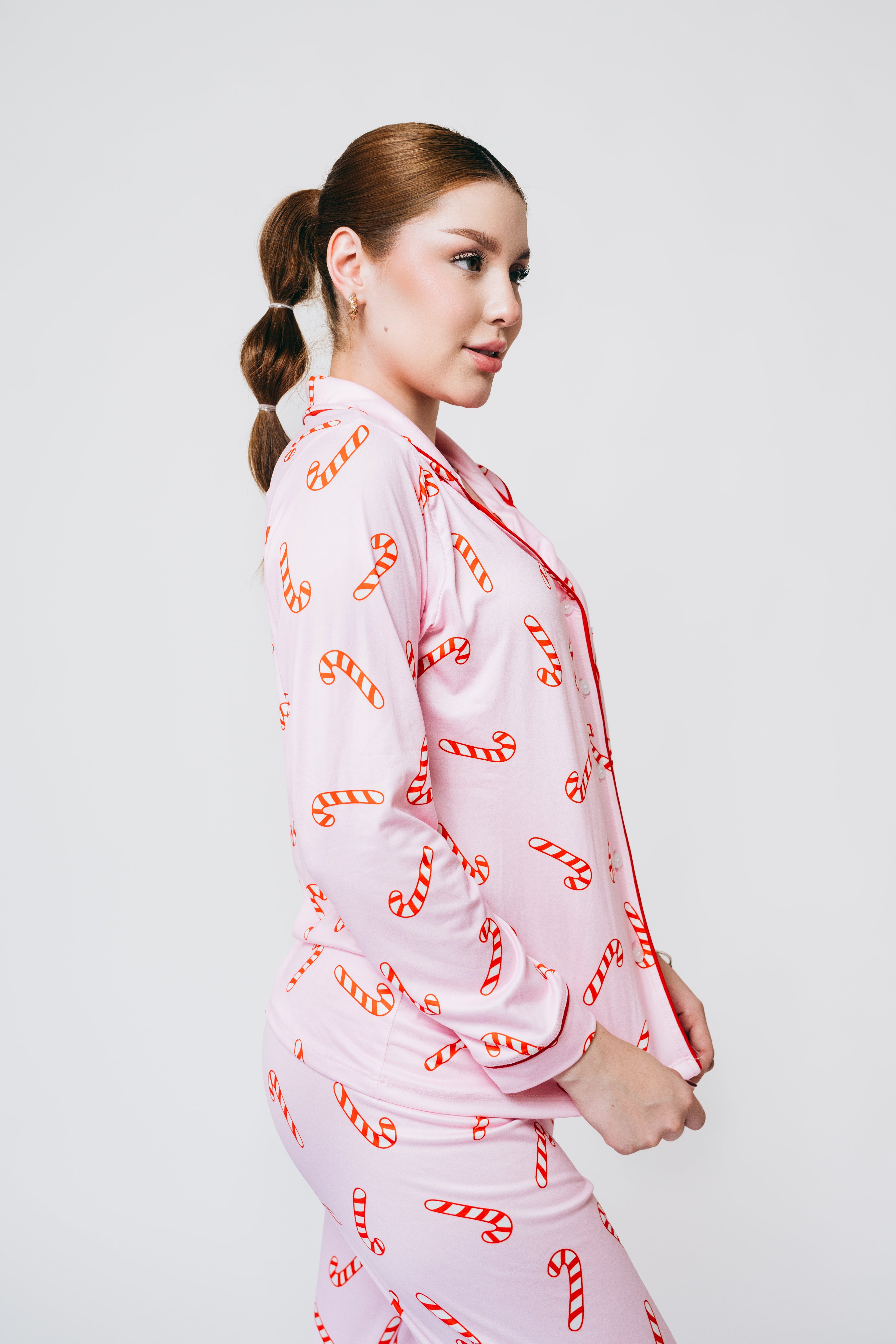 Conjunto de pijama edición navidad caremelos rosa para dama.